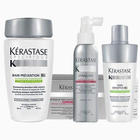 Erin Conley recommends the full gambit of products by Keratase’s Specifique line for those experiencing hair loss issues. Her favorite product in this line is the Intense Scalp Treatment, which quickly produces visually fuller and thicker looking hair and can be used as a daily regimen at home.